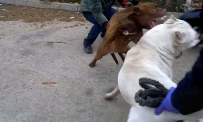 在主人不断地怂恿,教导,各种怒吼之下,比特的斗志被燃起了,直接朝着杜高咬去。