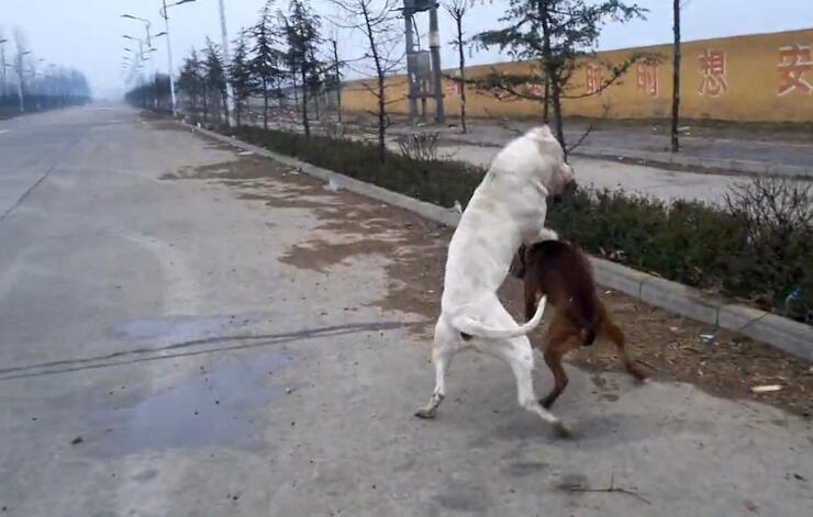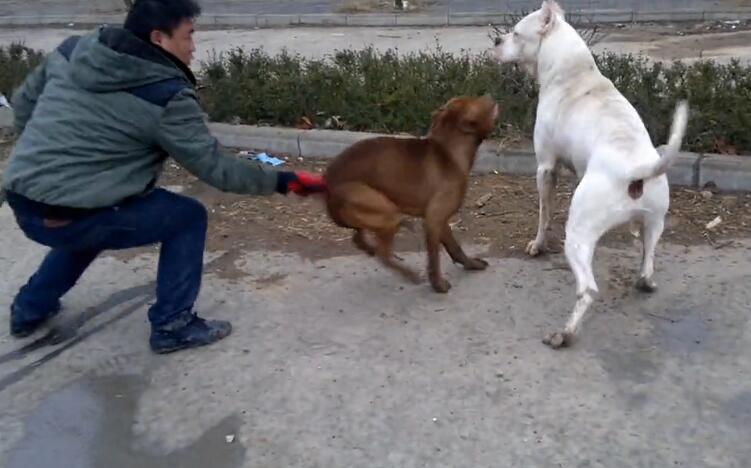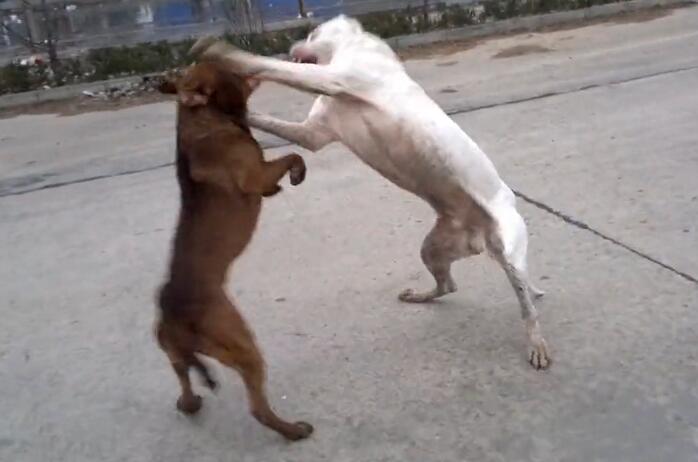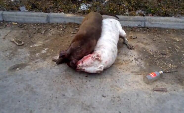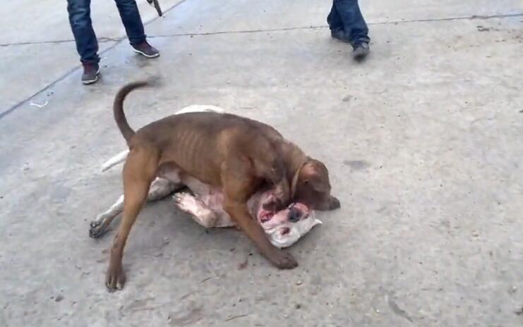 而主人在这个时候,并没有拉开两条狗狗,因为胜负还没分,反而在旁边不断地叫喊,不断地教“战术”,两条狗狗又不得不继续淌着血战斗