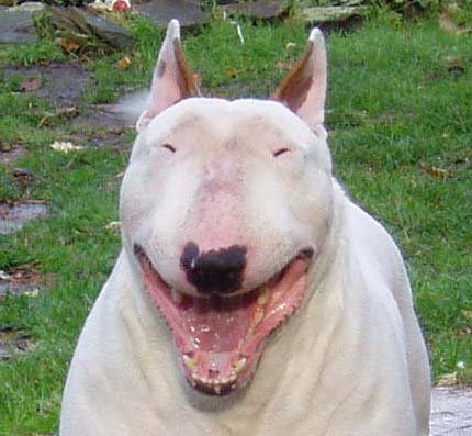 除了强壮的身体之外,斗牛梗最有代表性的就是它的那张脸了。有人说,牛头梗的脸有点像人,看上去有点滑稽。它们的脸部虽然很特别,但是它们的嘴部却好似分具有力量,因为它们上下两排牙齿其实非常发达,咬合力也比一般的狗狗要高。
