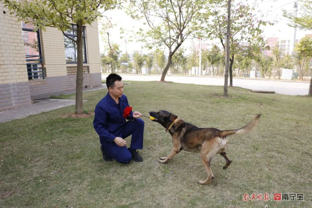12月10日上午,南宁市消防救援支队各队站相继举行了消防员退队欢送仪式。在搜救犬站,曾庆荣刚刚踏上送行车辆,“小马”就多次试图用身体去阻拦车子,不让车辆驶离。“小马”还时不时地趴住车门。当车门打开,“小马”不断地把头往曾庆荣的怀里钻,直到曾庆荣反复答应一定会来看它,它才恋恋不舍地下车,并在送行车辆驶离时,还追着车辆跑出好远,让在场目睹的其他消防员瞬间破防,流下了眼泪……