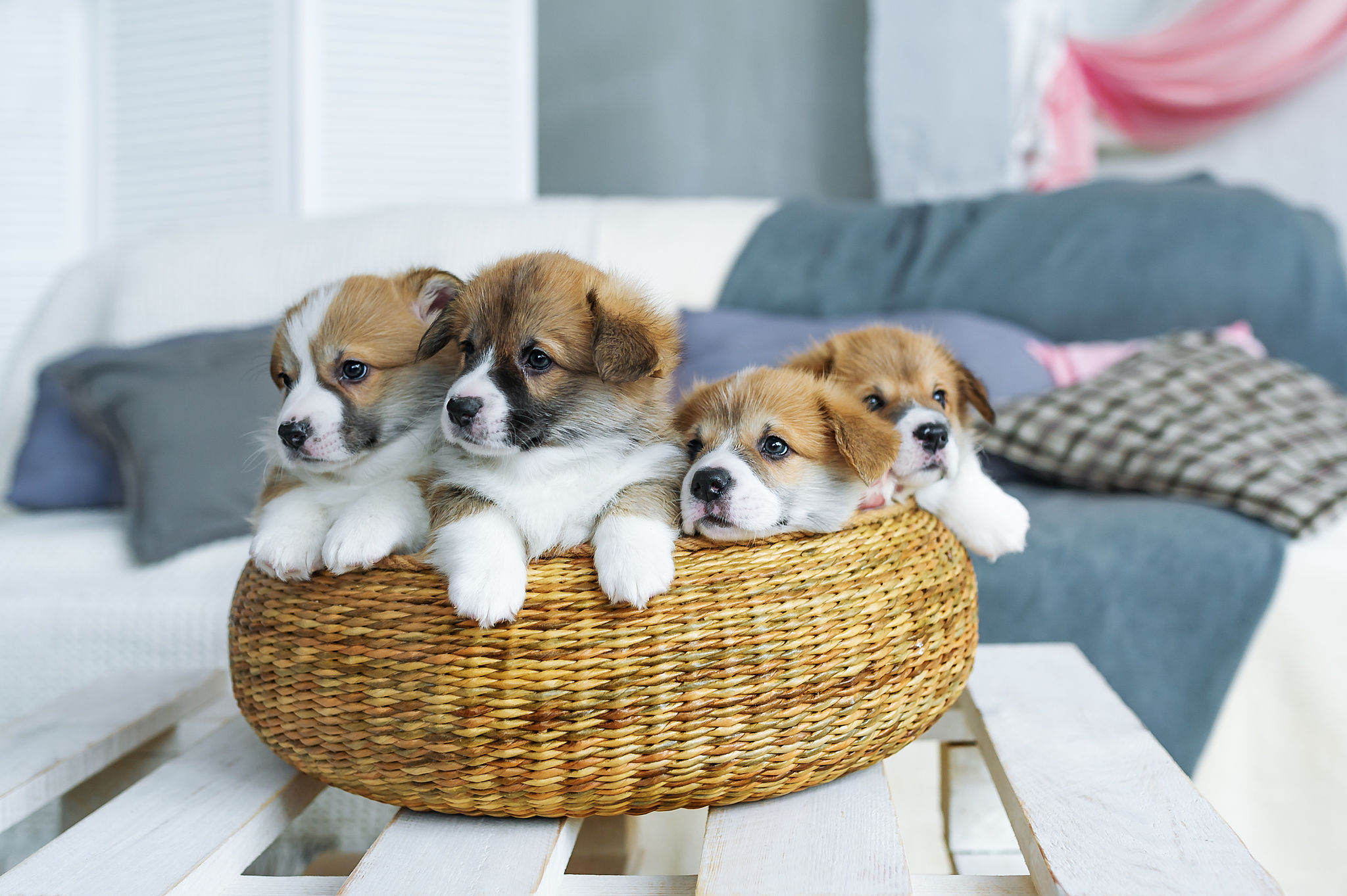 柯基犬性格温顺,对人友善。身体修长,毛发蓬松、小短腿和蝙蝠一样的大耳朵,特别是它走起路来那一扭一扭的大屁股,实在是太讨人喜欢了。
