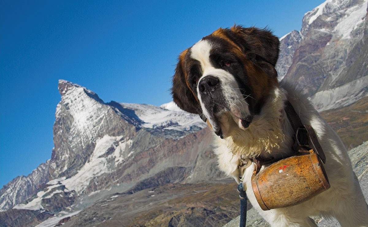 纯种的圣伯纳犬几乎绝种,这是一种大型的工作犬,擅长雪山救援,每当暴风雪来临,它们会大显身手,庞大的身躯可以把遇难者驮回营地,拯救在雪灾中遇难的人类,脖子上带着救援桶,成为圣伯纳犬标志性装饰,曾经有工作十几个小时,救助过13个人的壮举,是瑞士的国宝,体重可以达到100公斤,肩高能达到90。圣伯纳犬体型和面容看上去很有压迫感,但是它们却异常善良,友爱,尤其喜欢人类的小孩。