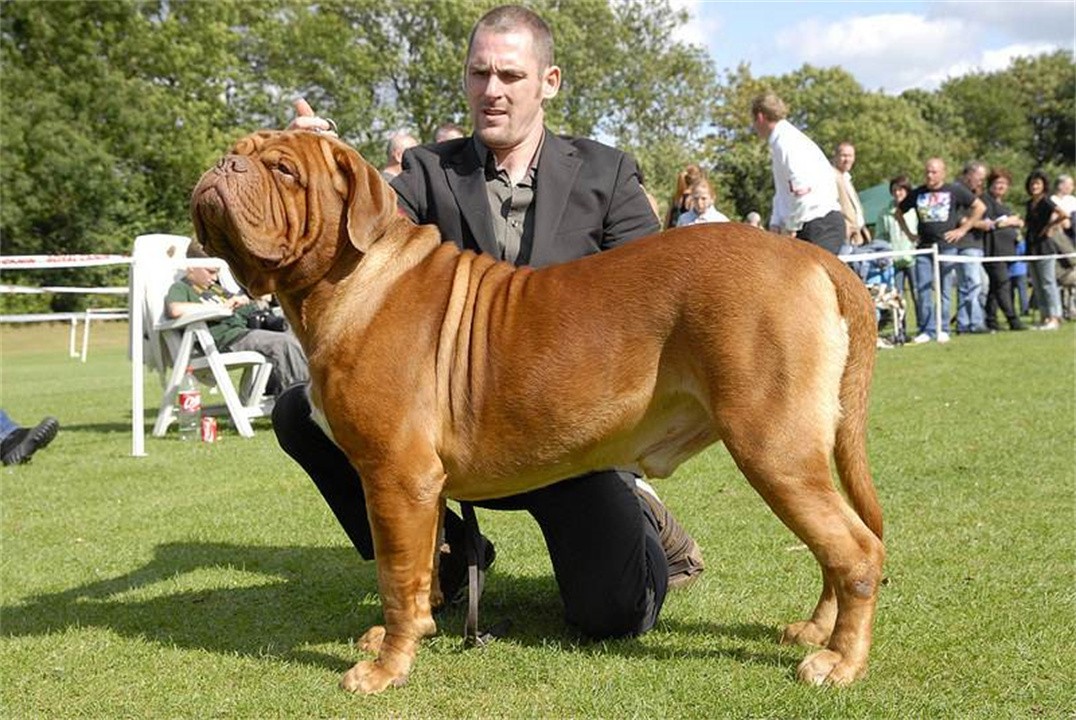 第八名,波尔多犬。波尔多犬别名法国獒,是一种非常古老的欧洲犬种。它们肩高60厘米左右,身材短小矮胖,力气非常大,体重50公斤以上。