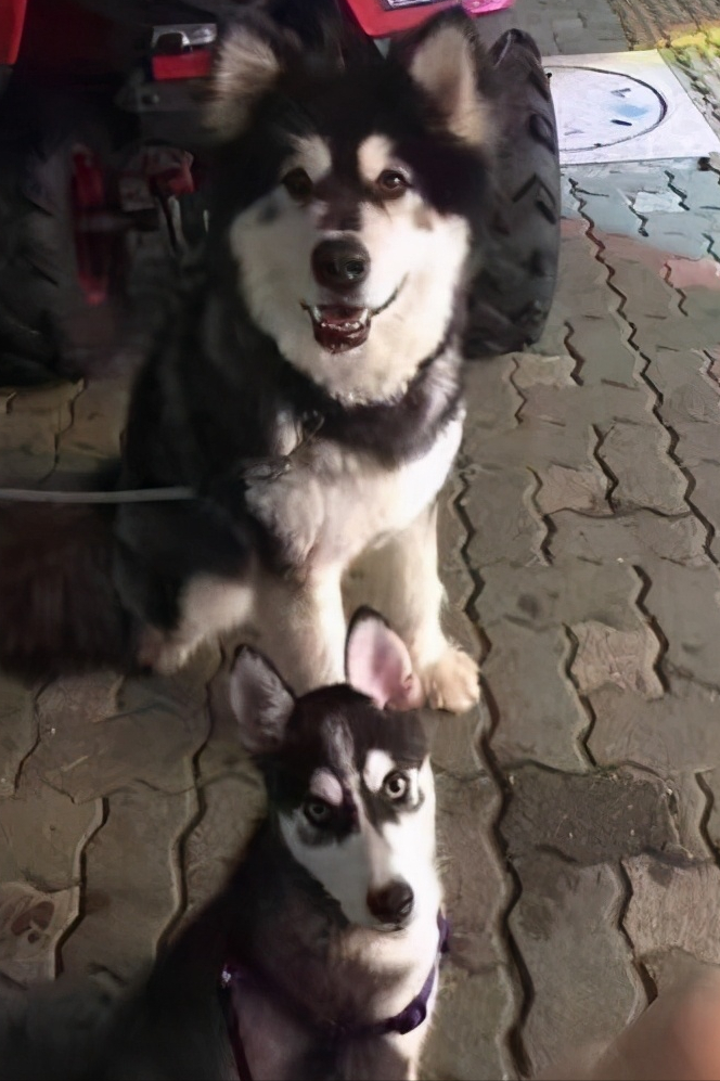 当两者站在一起时可以得到很好的区分,较为矫健瘦小的是哈士奇,较为健壮威猛的就是阿拉斯加。