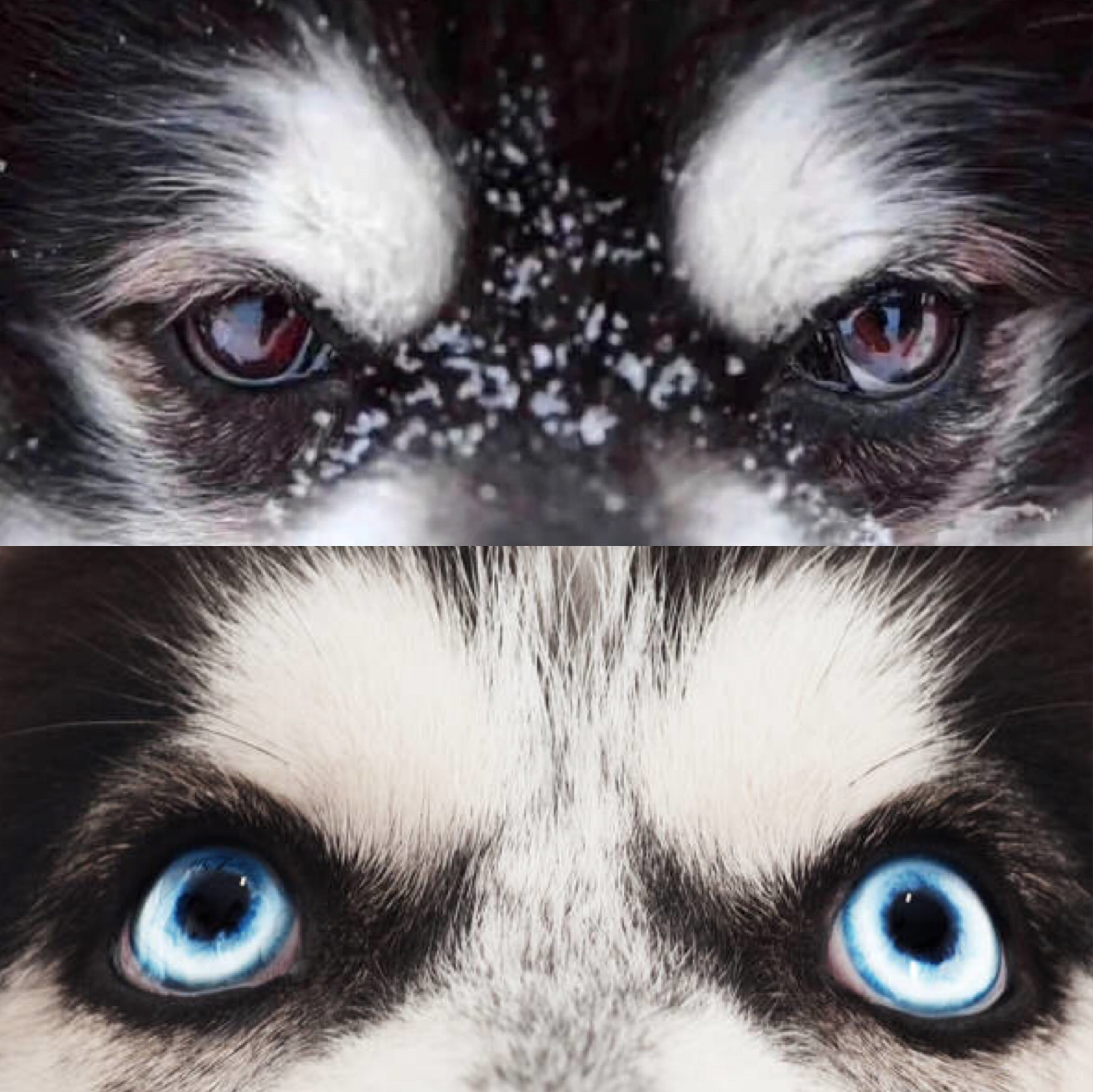 但哈士奇瞳孔颜色就多了,不仅有棕色,还有蓝色,甚至还有同时拥有蓝、棕鸳鸯眼。
