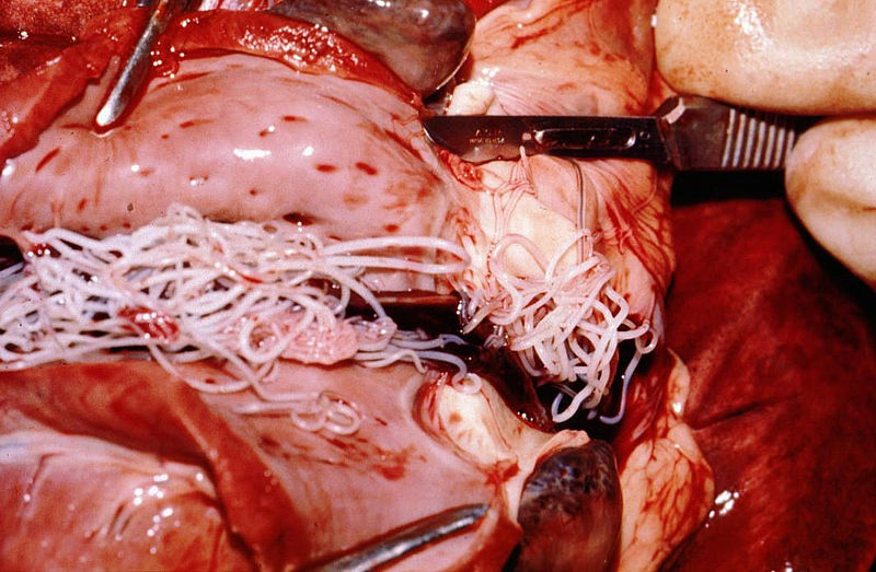 心丝虫病,是由心丝虫寄生在狗狗的右心室以及肺动脉(少见于胸腔、支气管内)引起循环障碍、呼吸困难及贫血等症状的一种丝虫病。心丝虫是以蚊子为中间的宿主,如果狗狗被蚊虫叮咬,很有可能会被感染。生活在炎热的热带以及亚热带地区的狗狗,发病率会更高。犬心丝虫病在国内很多城市都有诊断出犬心丝虫病,在四川省工作犬心丝虫感染状况的调查中,从128只工作犬中采集128份血样,用改良Knott’s法和ELISA快速检测试剂盒分别进行犬心丝虫微丝蚴和雌性成虫的检测,其感染率分别为5.47%和20.31%,可见犬心丝虫病离我们并不遥远。