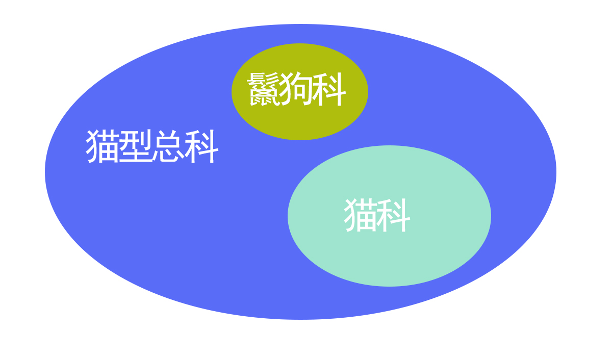 这里面需要搞清楚的是猫型总科与猫科之间的关系,简单来说就是包含与被包含的关系,所有的猫科动物都属于猫型总科下面的物种,但猫型总科下面的物种并非都是猫科动物。