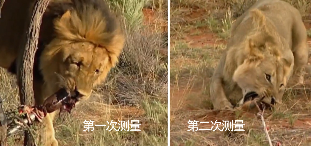 但是这个科普节目说的就正确吗?事实上这里面有很大的漏洞,首先就是测量方式的问题,研究人员在测量雄狮咬力的时候,先将金属测力棒包裹一层肉,然后绑在树上,期望雄狮能够来啃咬,但结果却大失所望,狮子只是一直舔,将肉舔光就走了,于是研究人员不得不改进测量方法。