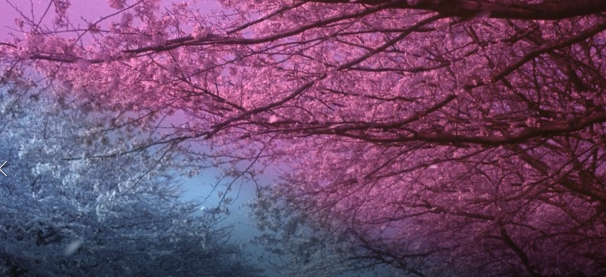 上部分是粉色樱花飞舞,代表了希望,小八梦想成真,见到了思念的主人。