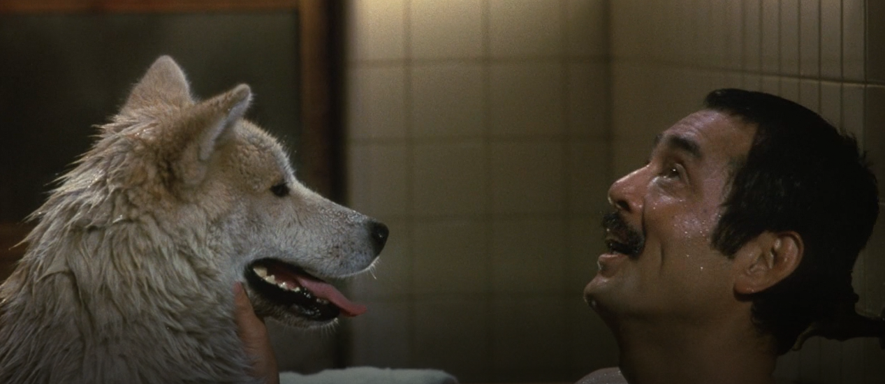 教授和小八一起泡澡,一起散步,小八度过了一段快乐的日子。小八每天陪着教授上下班,到点了便会去车站等待下班的教授,风雨无阻。