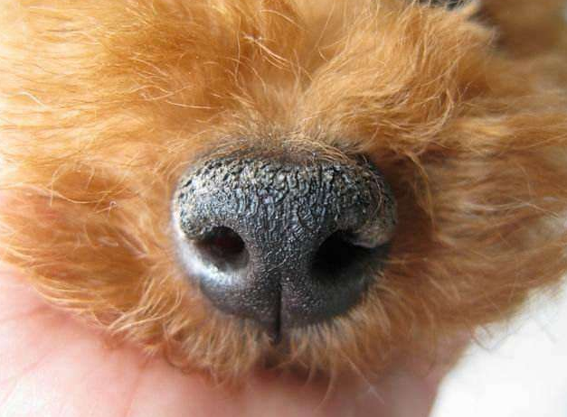 在选购幼犬的时候,主人也要看下幼犬的鼻子,一只健康的幼犬鼻子是湿润、光滑,用手摸有冰冷感。