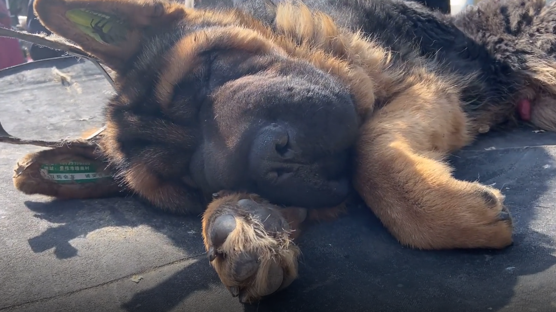 “就这?”周围立马有人表示不值得,也因为这话,周围也陷入了一阵尴尬的沉默之中,仅剩狗市里的狗狗的叫嚣声……随着这里的冷场,慢慢也开始有一些路人开始离开,不过不一会又有一些其它路过的路人凑了过来,只见一个刚过来的路人好奇地问道:“什么狗?”“锤系”大哥看到有其他人过来后,立马热情地招呼道,“多少钱?”有人问道,“2000块钱!”大哥摸了摸瘫倒在三轮车的狗狗说道,“我看你一两千能拿来吗?”不过大哥似乎把价格咬伤了,也不愿再降了,于是问价的路人也慢慢离开了,随着人越来越少,慢慢也有一些路人开起了这只德牧的玩笑,有路人笑着说道:“哈哈哈,被打肿了……”“这马蜂叮的!”大哥解释道,而一些路人也顺手摸了摸狗狗的嘴巴,然后感慨一句:“这大嘴皮子”……