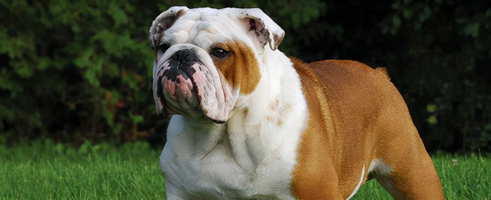 中型犬有一个皱巴巴的脸被推入鼻子,这是这个品种非常独特的。英国斗牛犬有强壮的外表和肌肉发达的体格。