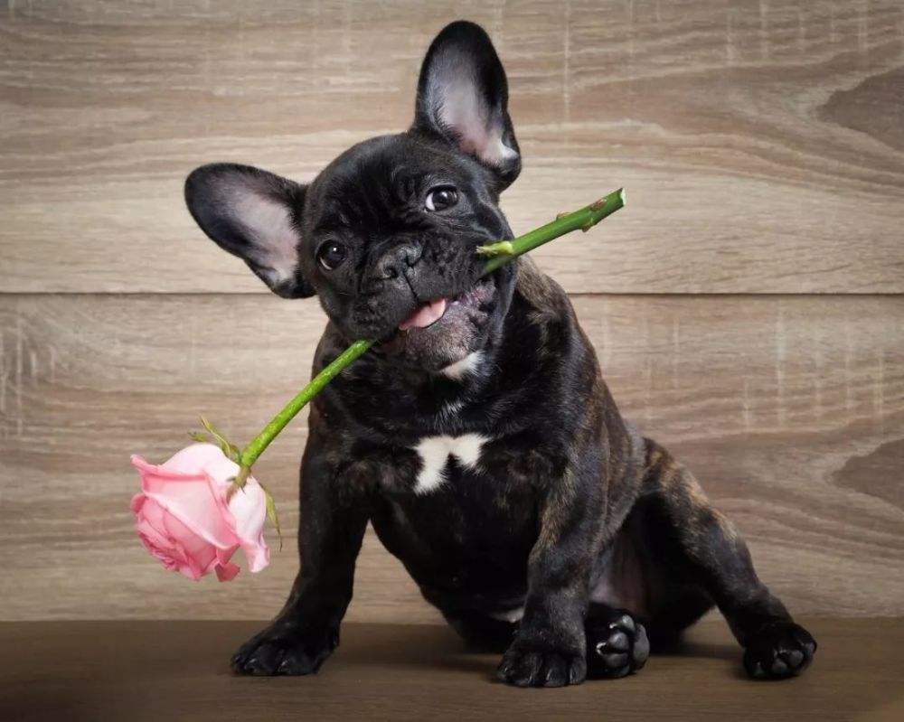 10、法斗:美丽的妈妈,这是我为你摘的粉红玫瑰,希望你能每天都爱我,即使我拆家!