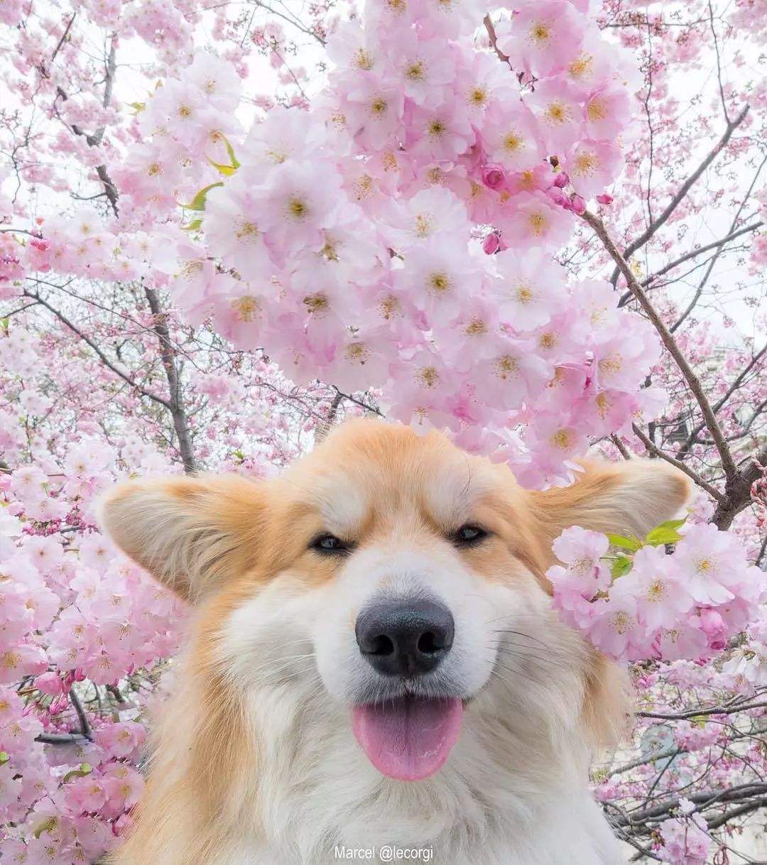 3、柯基:虽然我眼睛小,但主人带我领略了樱花之美,真的很香、很好看