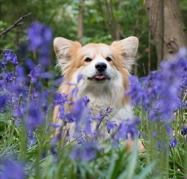 2、谁能拒绝一只露出治愈笑容的花冠小柯基呢?实在是仙气飘飘,可爱至极