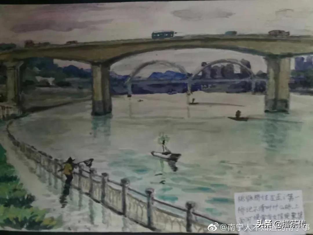 老爷爷还附上了女儿送走狗的那个河堤,这些画都是他自己画的