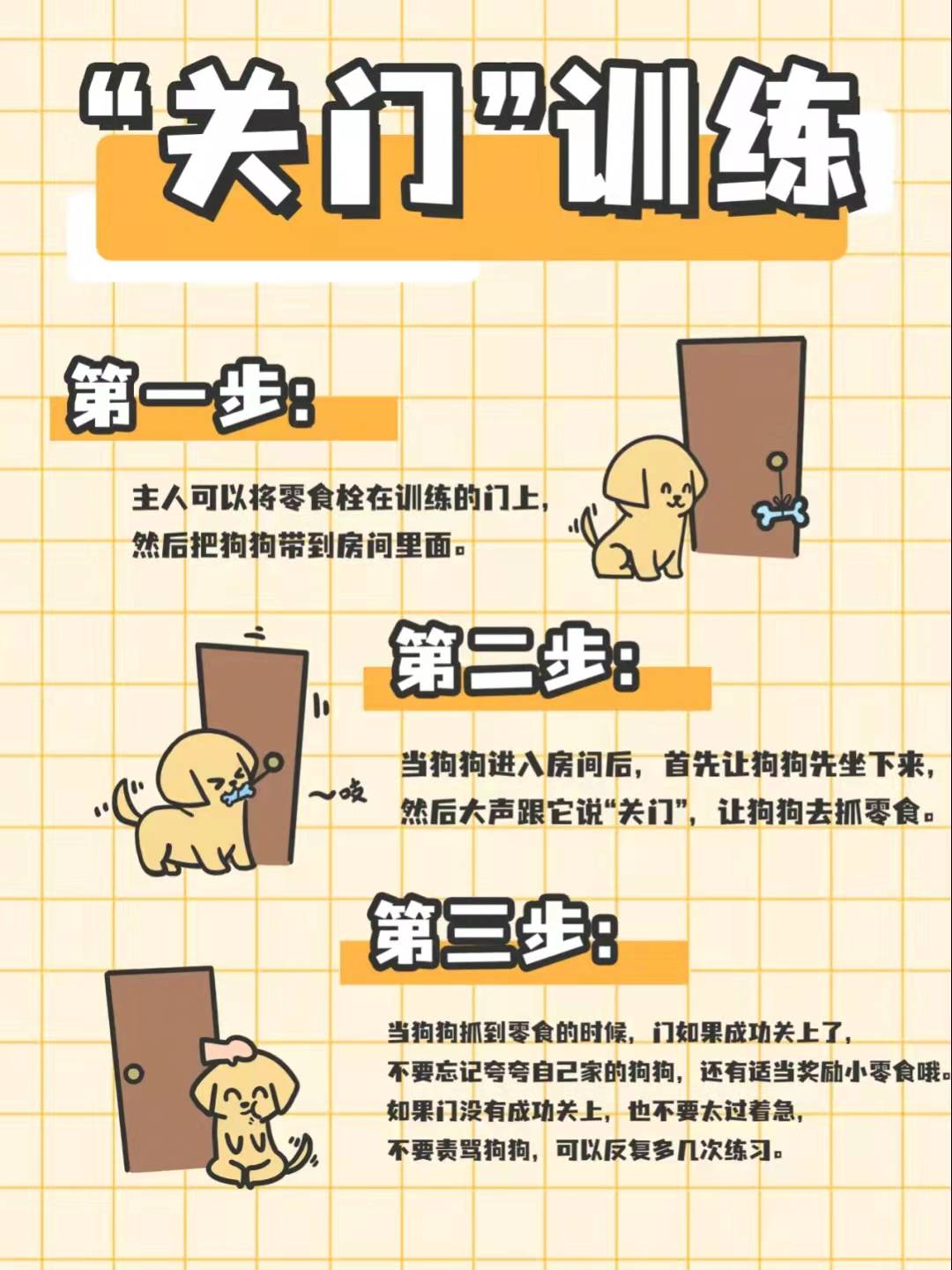 步骤一: 需要主人将零食挂在门上,然后将金毛带进房间里面(你要让金毛学习关门的地方)。