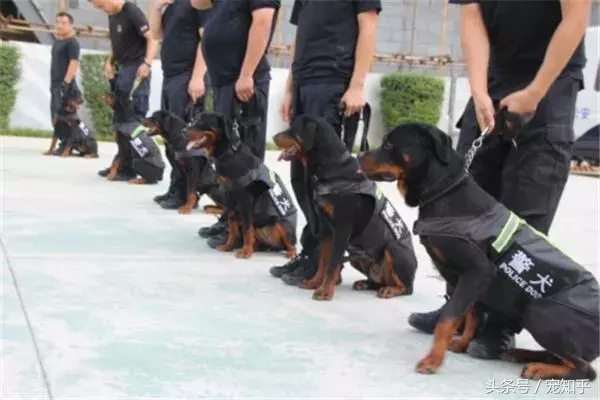 罗威纳体型高大强悍,服从性好,攻击力强,主要用于巡逻、警戒、防暴。