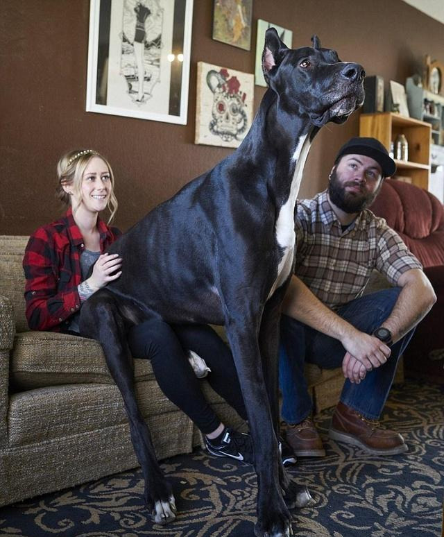 体超过1米高的大丹犬也有不少,已知最大的狗狗是一只名叫“大乔治”的大丹犬,肩高109厘米,站立高度则可以达到220厘米,体重111公斤,基本跟一些矮小型马种身高差不多了!