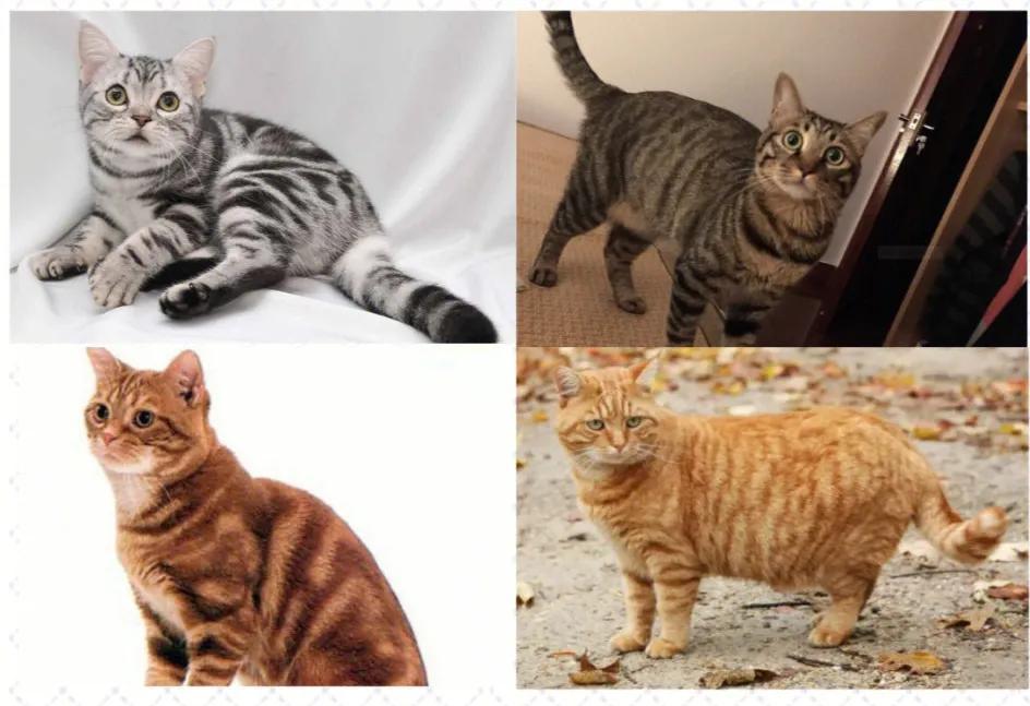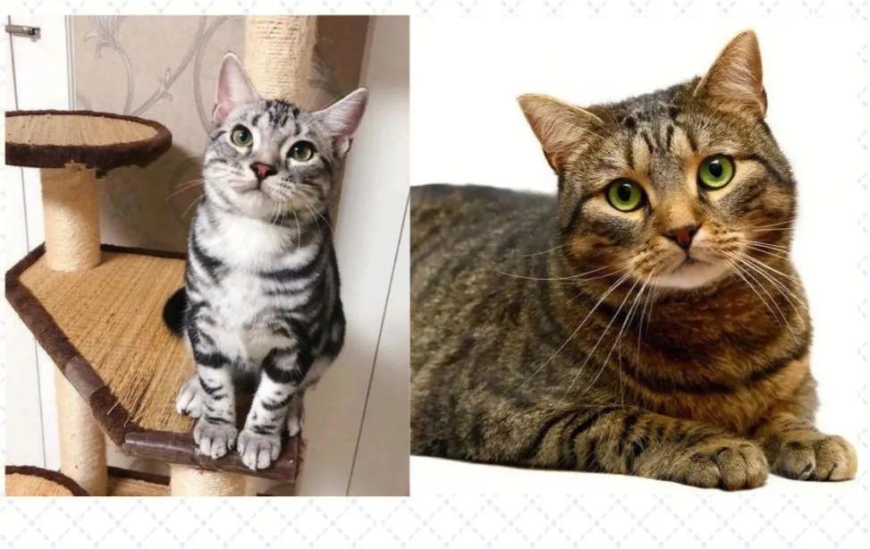 美短猫:体型相对比较大一些,因为身体的骨骼比较大,成年后的美短猫身材矫健,身上有肌肉。但狸花猫和美短猫都比较容易过度肥胖,与宠主的饲养方式有关。