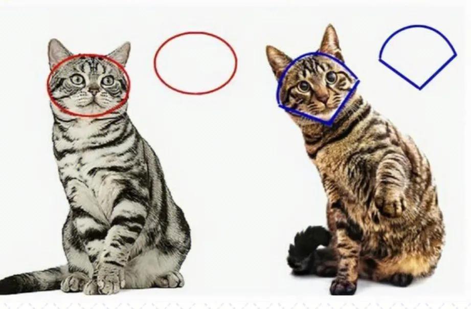 美短猫:脑袋的顶部形状接近水平,没有明显的弧度。美短猫的脸型比较圆,呈椭圆形,并且脸盘子比较大,还很容易发腮,捏起来有肉感,撸猫手感好。