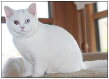 蓝眼白色猫是比较稀有的品种。第一只蓝眼白色英国短毛猫出现于1980年代早期。当时很受欢,常成为展示会上的优胜者。