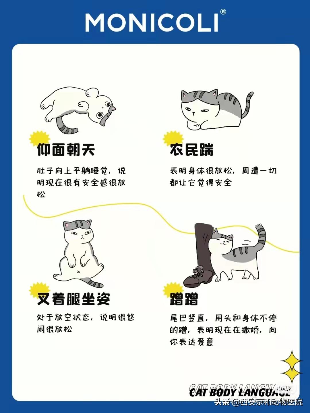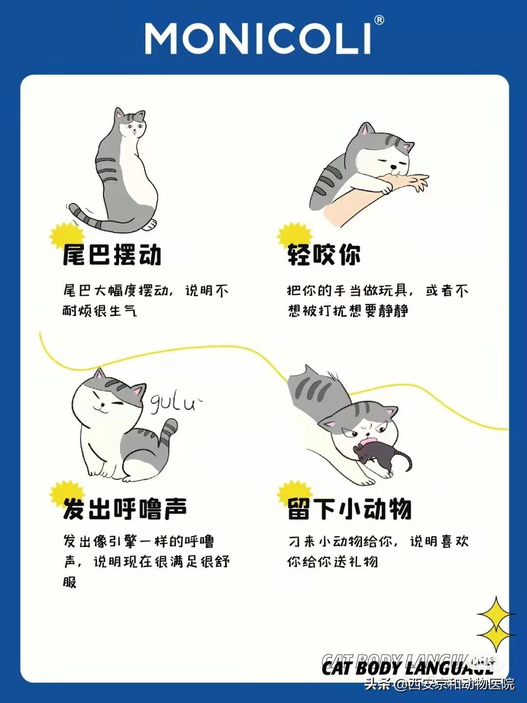 时间: 2023-12-06 14:10:01前面分享过狗狗的18种肢体语言,很多粉丝要求出一期猫猫的肢体语言解读,今天我们一起来看看猫咪的20种肢体语言。