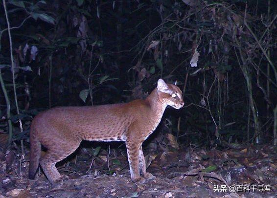 野生亚洲金猫——猫亚科金猫属 亚洲金猫体重8.5-15.8千克,不同种群毛皮颜色差别很大,身上有斑纹的称为“花金猫”,身上无斑纹、毛色偏褐的称为“灰金猫”,无斑纹毛色偏红的称为“红金猫”,还有黑化的金猫,称为“乌云豹”。