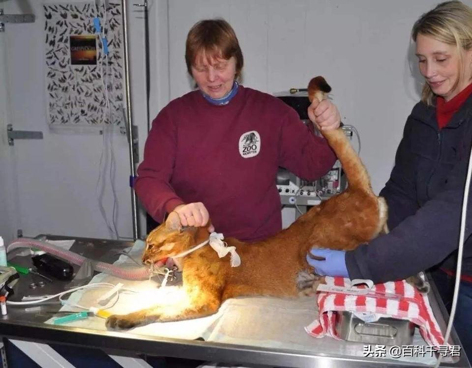 做体检的红金猫 还有一种和它关系很近的神秘物种——婆罗洲金猫,生活在加里曼丹岛的雨林深处,目前只发现过几只,资料很少,据称体重只有金猫的一半。