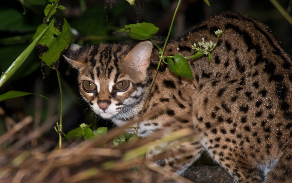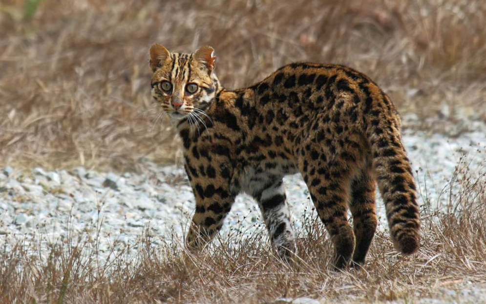 时间: 2023-12-06 14:32:01豹猫,食肉目猫科猫亚科豹猫属,共有12个亚种分化,有指名亚种、华东亚种、北方亚种、西表亚种、婆罗州亚种、爪哇亚种、克什米尔亚种等。是一种小型猫科动物,体型和家猫相仿,但更加纤细、腿更长,体长36-66厘米,体重2-5千克。广泛分布于亚洲的东部、南部和西部,栖息在山地林区、郊野灌丛和林缘村寨附近。属中国国家二级保护动物。