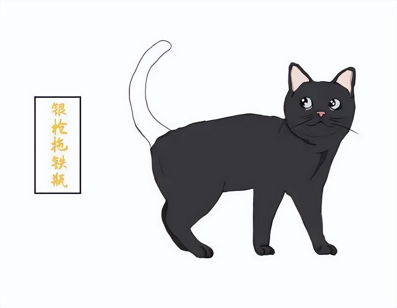 黑身白尾的称为“银枪拖铁瓶”。由于有人说这种毛色分布的猫是“白发人送黑发人”,寓意不好。