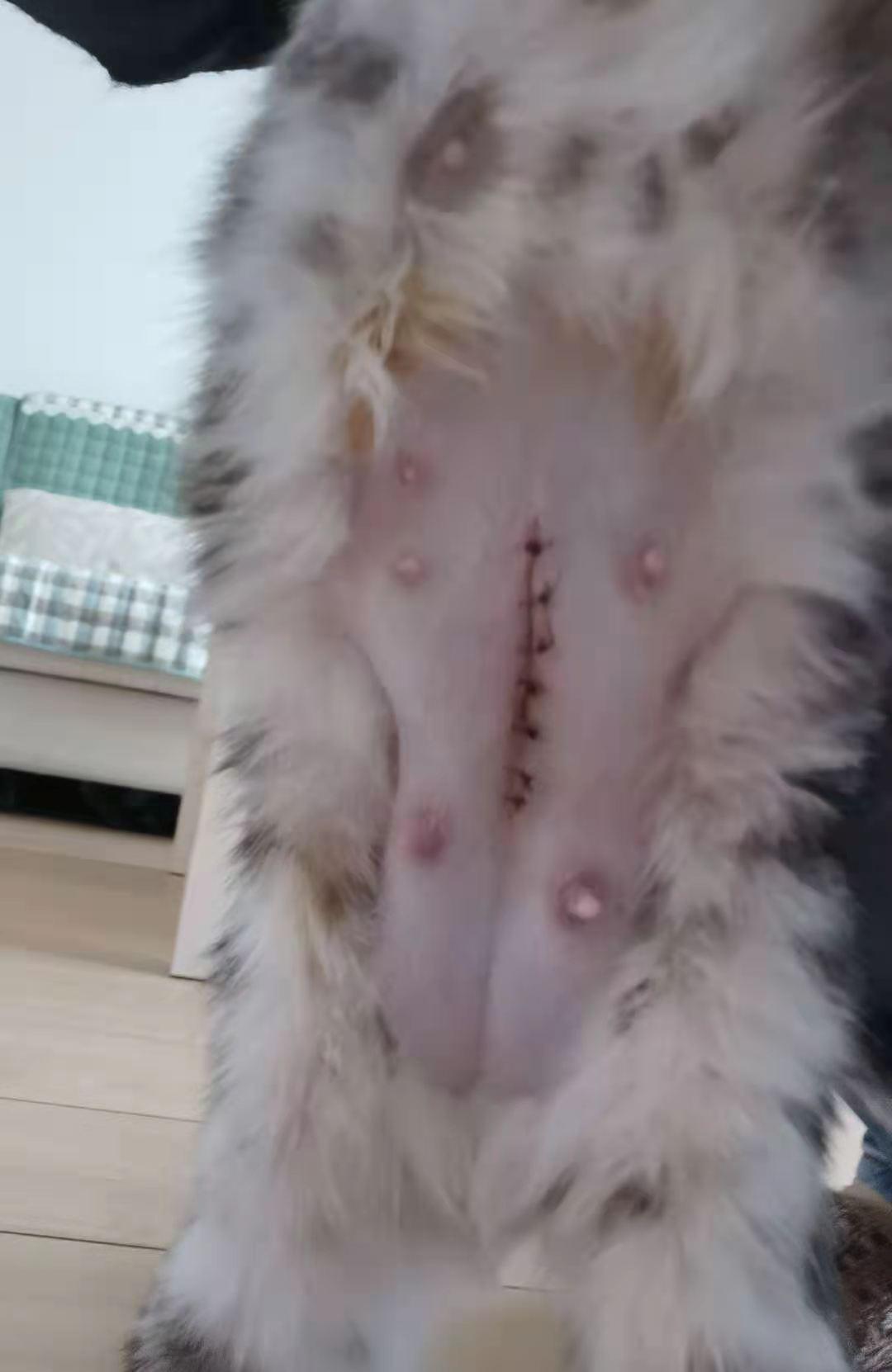 又半个小时过去了,小母猫的生殖处连分泌物都停止分泌了,万般无奈之下,宠主只好接受医生剖腹产的建议。