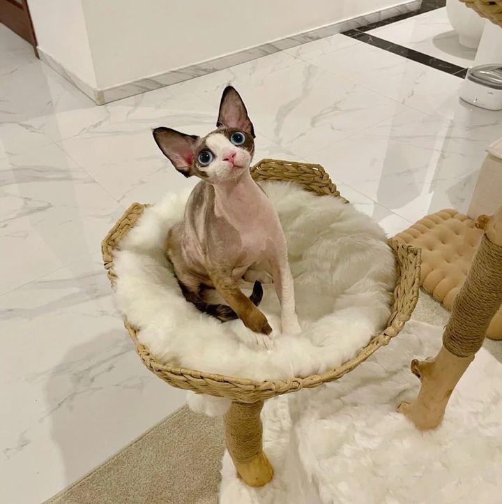 因为是小卷毛,不爱掉毛,又避免了无毛猫的尴尬