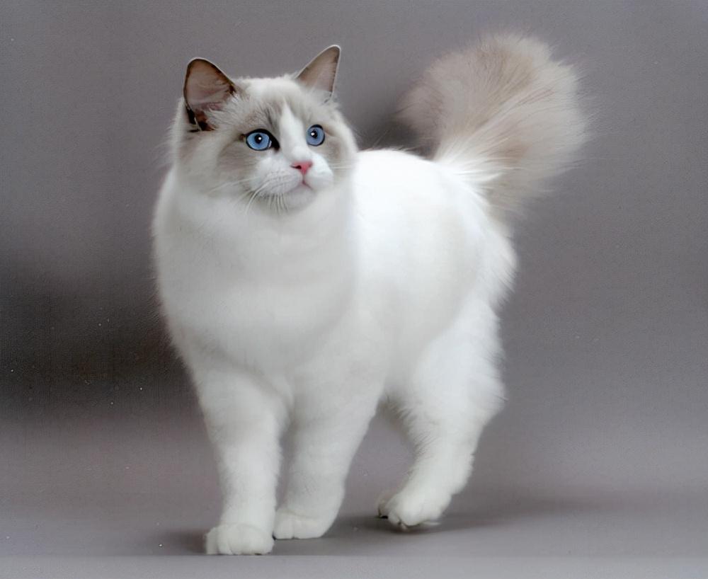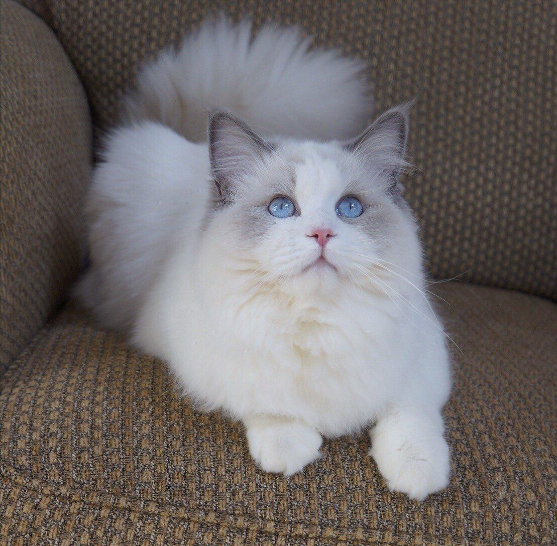 梵色布偶猫只有耳朵和尾巴是深色以外,其余部位都是白色。