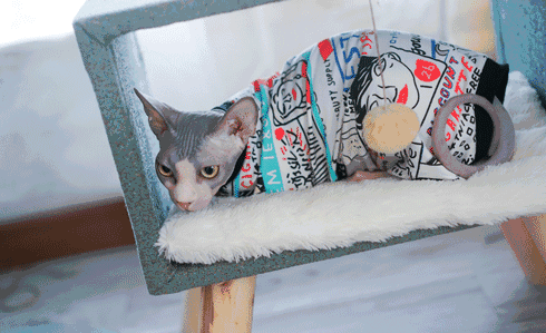 饲养常识:无毛猫比较怕冷,容易着凉感冒,所以最好给它穿上衣服,做好保暖工作。并且无毛猫的皮肤很容易脏,需要定期擦拭和洗澡。