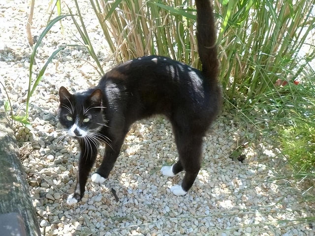 3、猫咪弓背翘尾巴