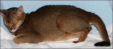 分娩日猫咪会不愿意进食,待在产房或者角落里不愿行动,等待分娩的到。