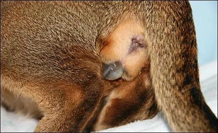 因为小猫头部的挤压,羊膜囊破裂了,我们可以清晰的看到猫咪的头部,母猫会继续宫缩,推动猫咪产出!