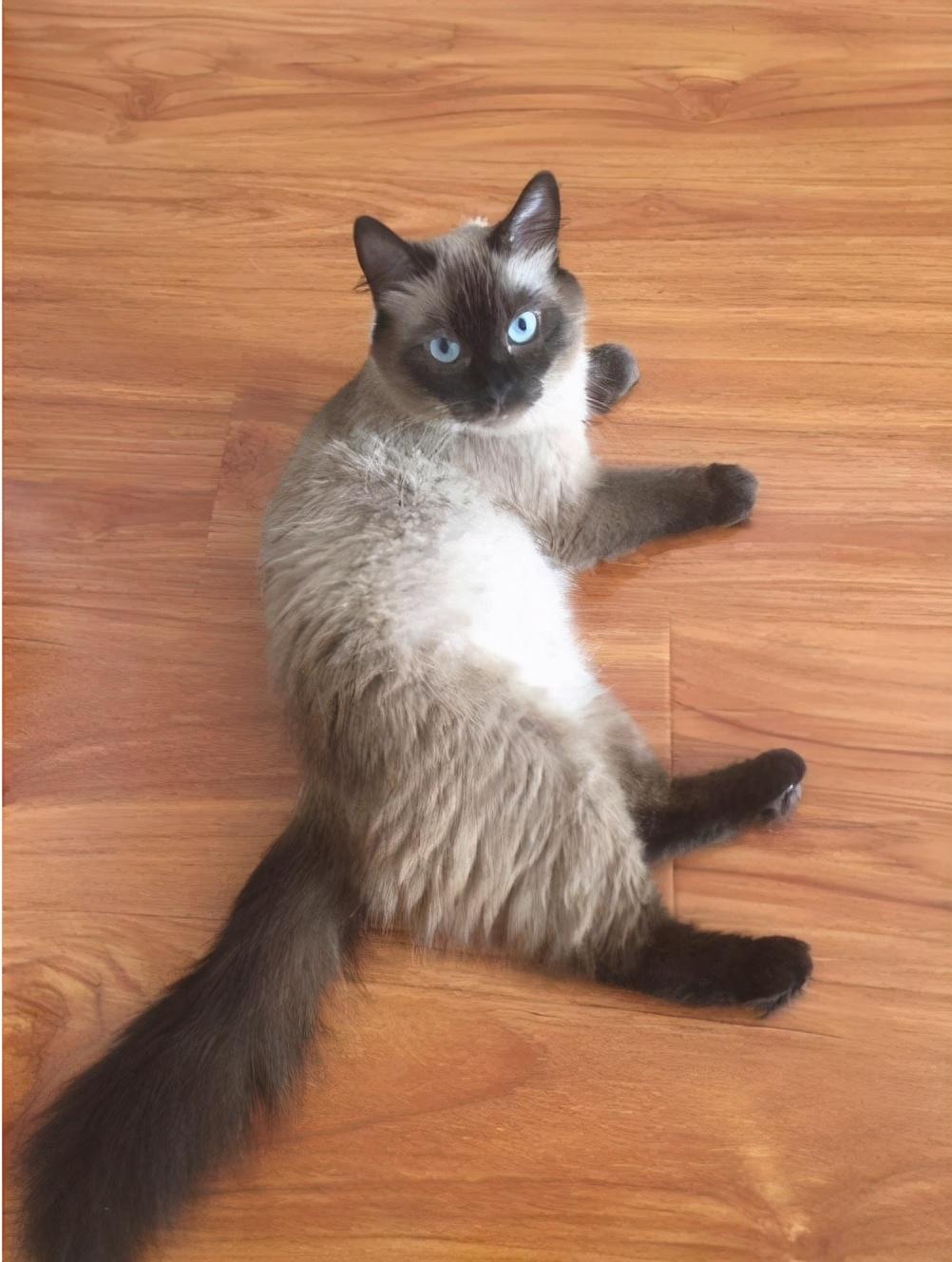 这是因为布偶猫本来就是重点色基因的猫咪,跟暹罗一样,重点色基因表现出来的就是蓝眼睛和身体末端部位颜色更深。只不过暹罗只有重点色和虎斑纹,没有出现双色这种情况。