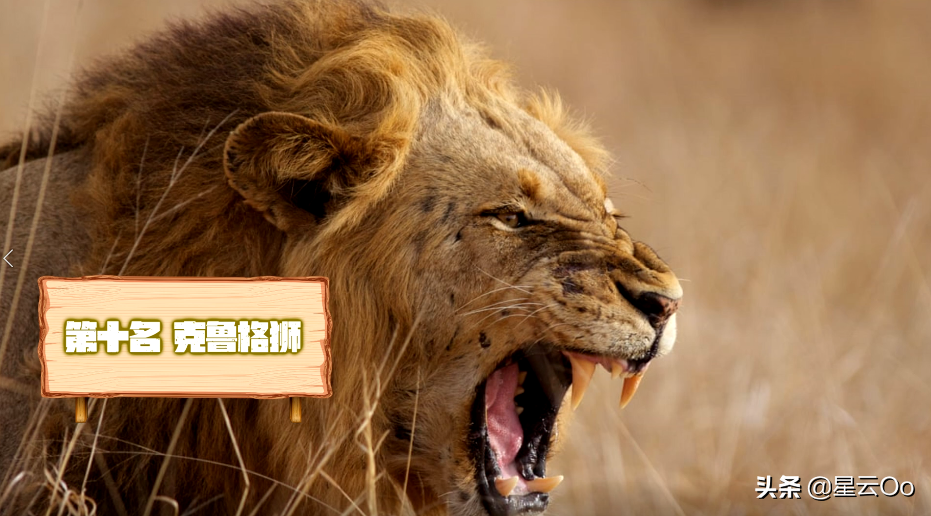 克鲁格狮,这种狮子现今生活在南非的克鲁格国家公园,雄狮平均体重150-250KG,肩高1.23米,克鲁格狮最著名的特点是它的鬃毛,只有雄狮才有。狮子年轻时鬃毛呈黄色,随着年龄增长变黑。最后,鬃毛会变成深棕色,克鲁格狮的身体非常适合狩猎。非常强壮的后腿设计用于猛扑,而前腿用于抓取和击倒猎物。