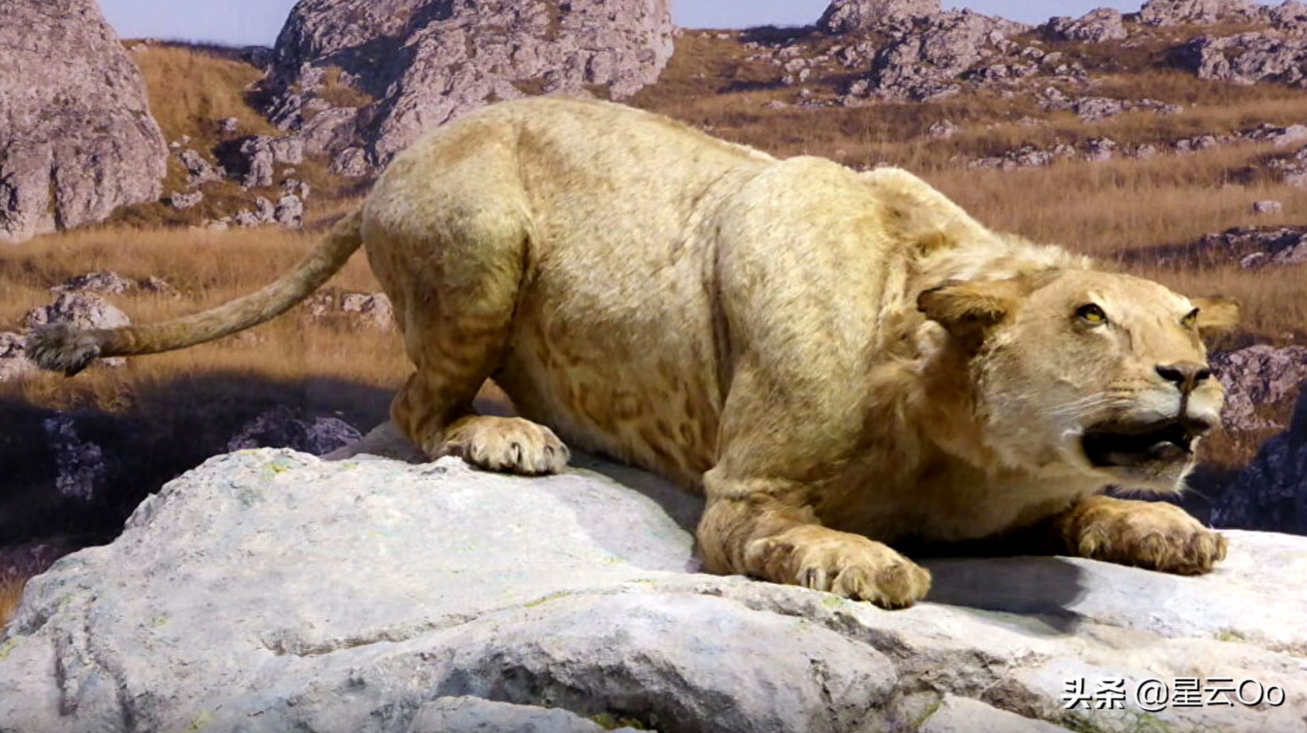 博物馆中保存的最大头骨标本全长48.5厘米,保守估计体重可达480KG,另外,私人收藏的标本头骨更大,据说全长达半米左右,这意味着这具原始狮的主人生前极限体重可达半吨,原始狮不仅是有史以来最大的狮类,也极有可能是地球上曾出现过的最大猫科动物。但一具肱骨的出土,将另一种猫科推上了宝座。