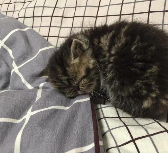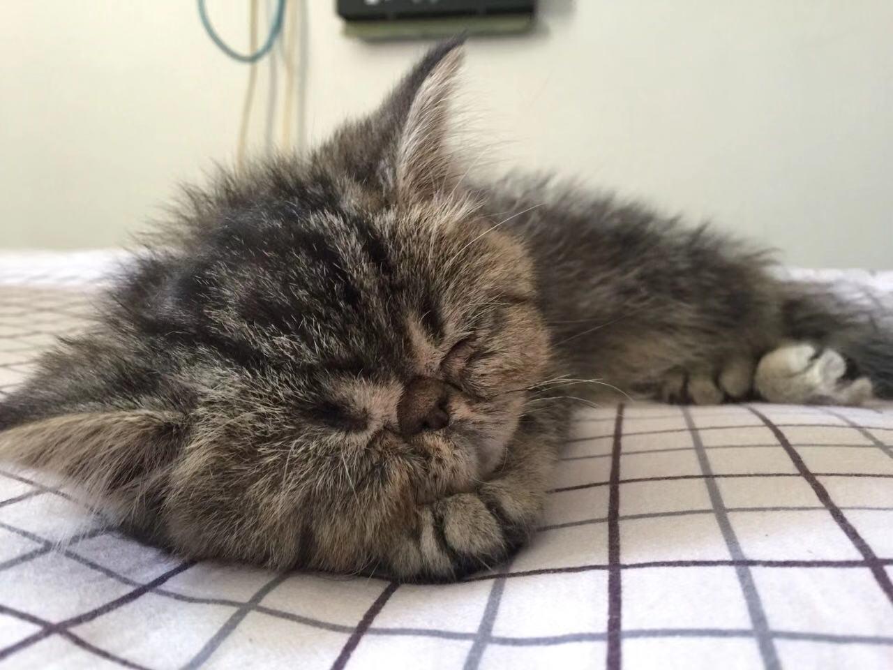 猫宝宝一次基本喝不了多少,每次3分之1针管的量就可以,吃完奶,他会继续睡,饿了会再叫,然后再喂,无限循环,后来我摸出规律,基本在2小时喂一次。