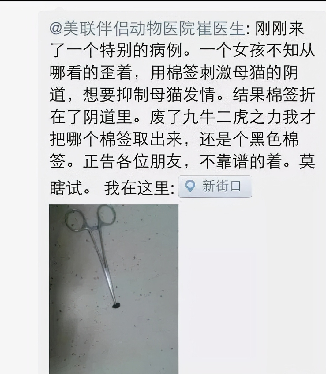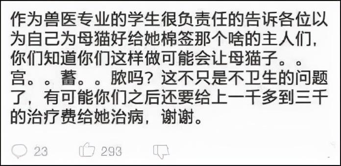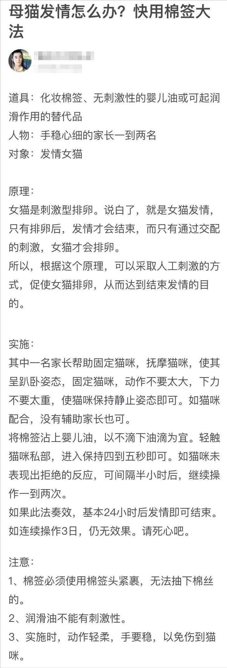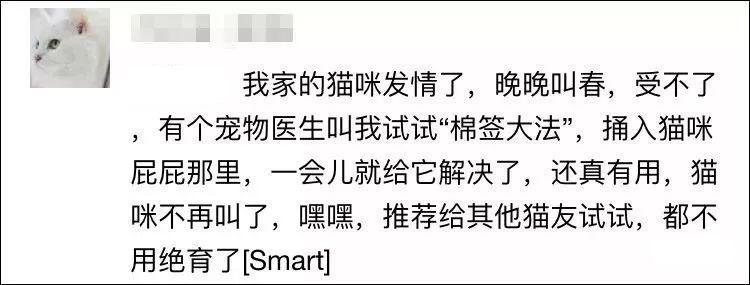 在咱们后台看到这样一条信息,说她的猫正发情期,医生推荐她用“棉签法”来解决,非常有效,还让喵先生推荐给大家......