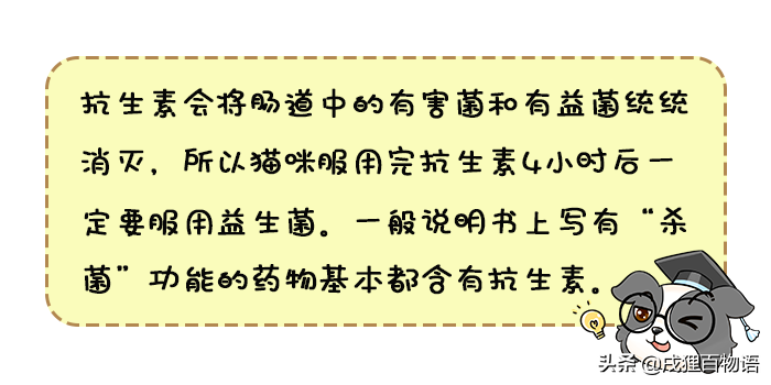 当猫咪腹泻时,铲屎官会喂食一些治疗腹泻的药物,这些药物里面可能存在吸附剂成分,如:蒙脱石(思密达)、高岭土等。吸附剂会吸附肠道内的水分和毒素来治疗腹泻,同样也会吸附益生菌,所以在服用含有吸附剂的药物后,需要间隔2个小时以上再服用益生菌。