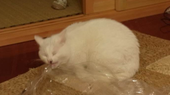 疯狂舔塑料袋的猫咪