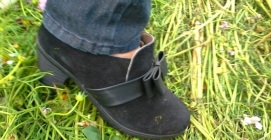 踩在草坪上的人脚