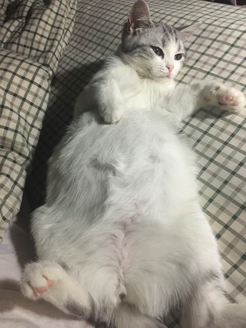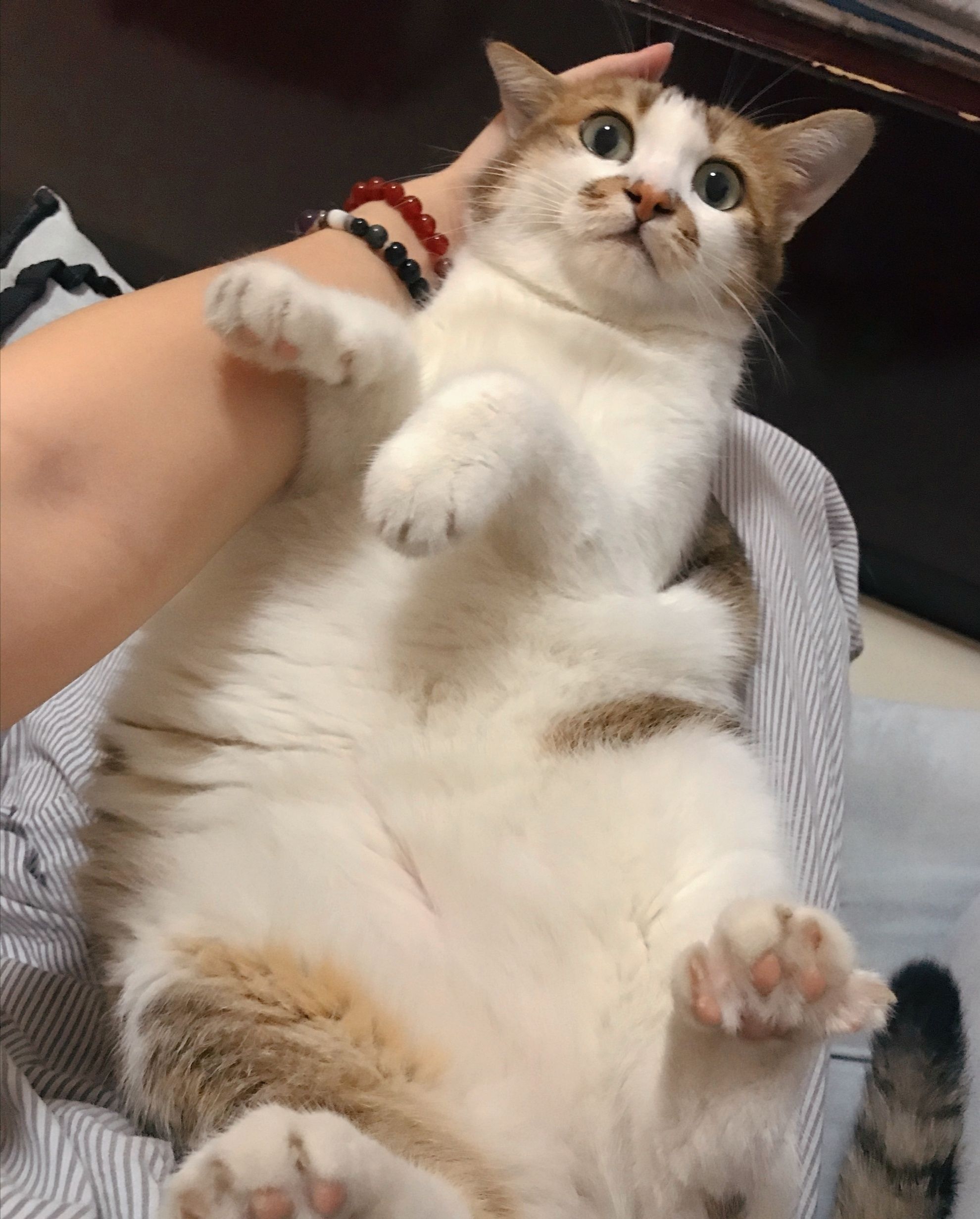 抚摸猫咪全身,摸不到或不容易摸到肋骨、腰椎上也都是肉肉的时候,恭喜你,你家猫咪肚子变大是因为太胖了,肚腩里都是满满的脂肪!尤其是在冬季时,为了抵抗寒冷的冬天,猫咪会本能地多囤积脂肪。