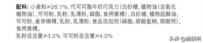 主要也是代可可脂。虽然其中有可可粉,但含量很少,可忽略。