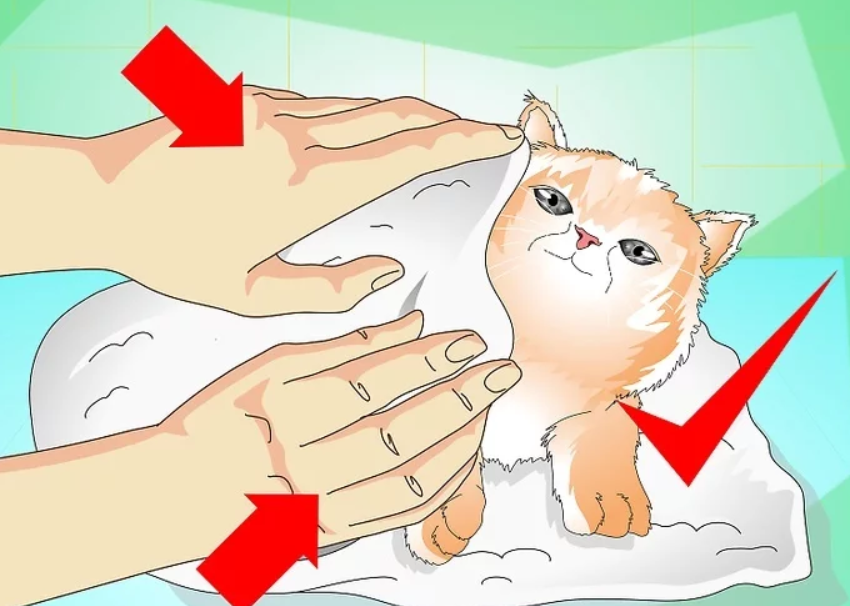 无论擦澡还是淋浴,当猫崽被抱出浴缸后,都要用毛巾把它们轻轻擦干,否则猫崽会觉得冷。